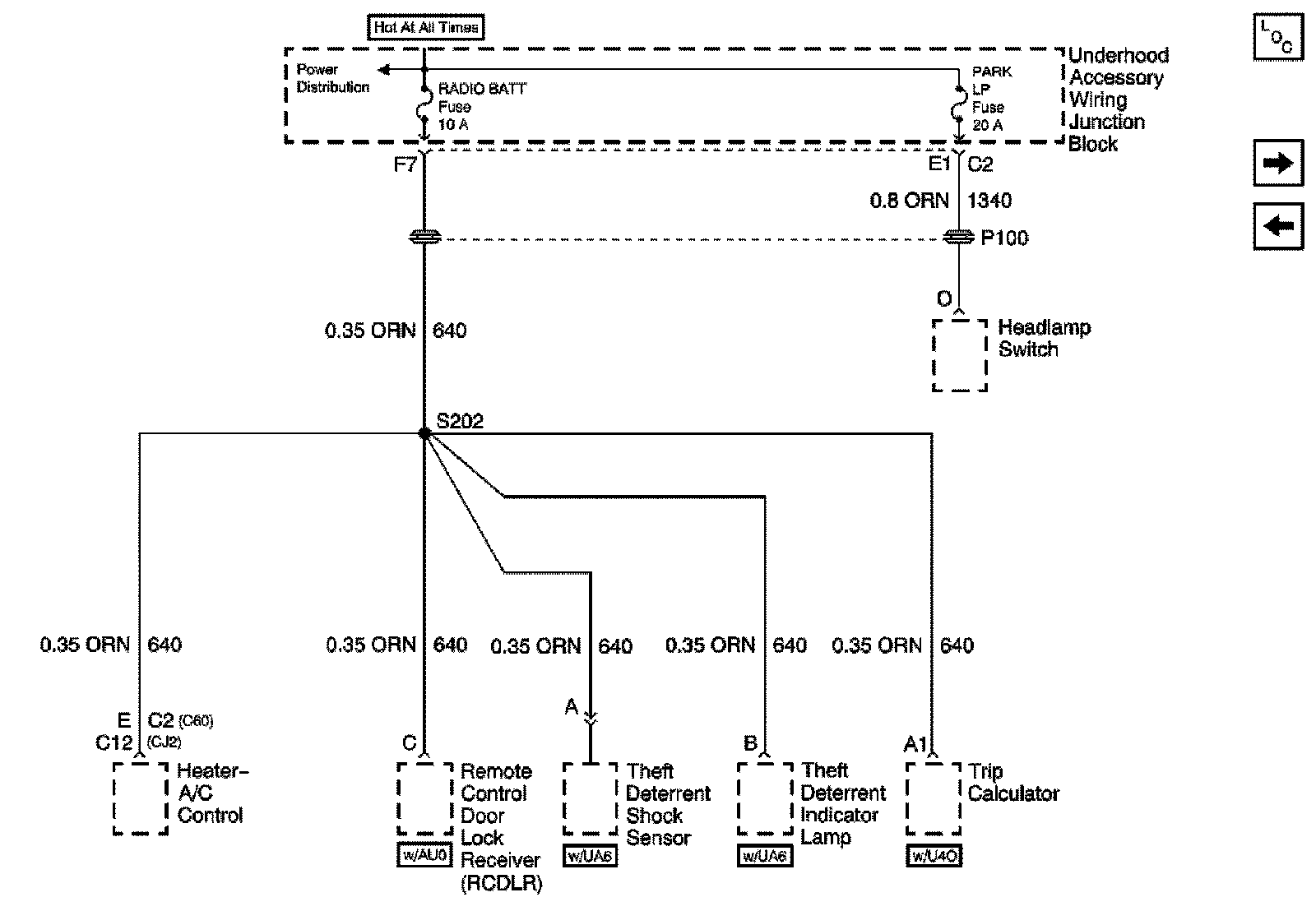 Underhood Accessory Wiring Junction Block, Headlamp Switch, Heater A/C Control, RCDLR, Theft Deterrent Indicator Lamp, Theft Deterrent Shock Sensor and Trip Calculator