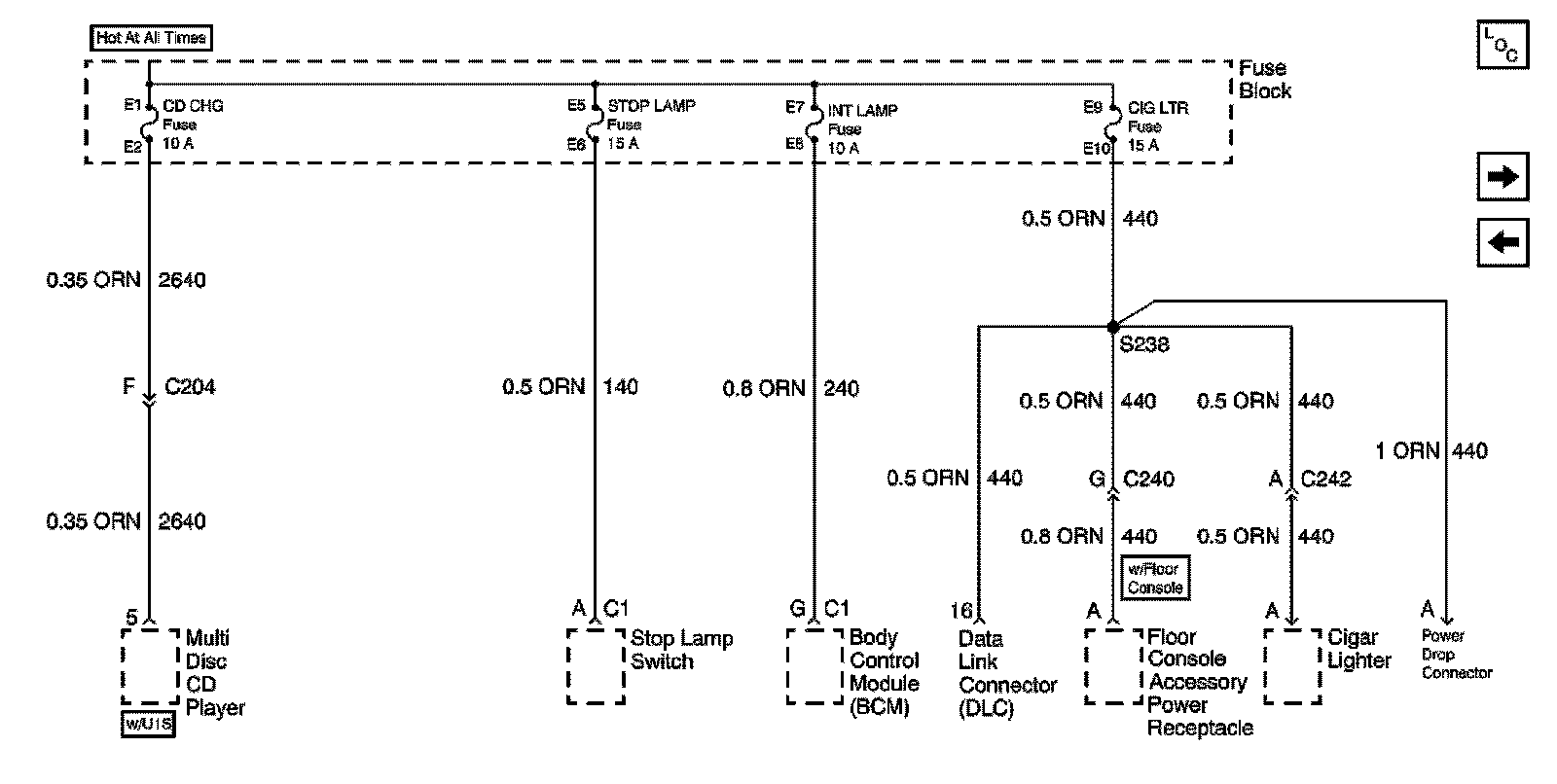 CD CHG, STOP LAMP, INT LAMP and CGR LTR Fuse