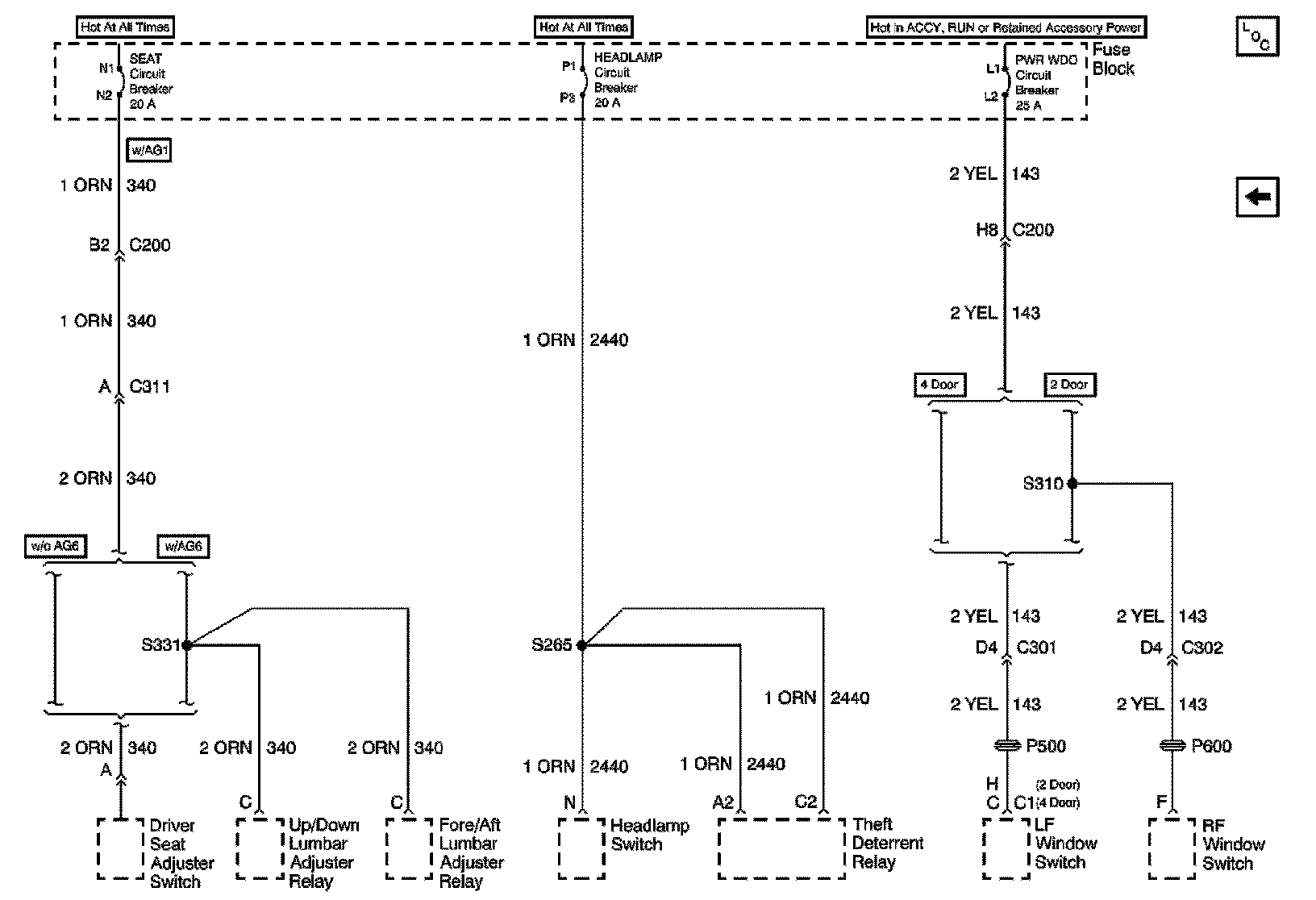 SEAT, HEADLAMP and PWR WDO Circuit Breaker