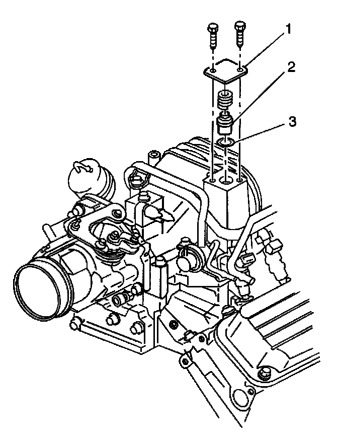 3. Remove the crankcase ventilation valve (2), spring, and O-ring (3).
