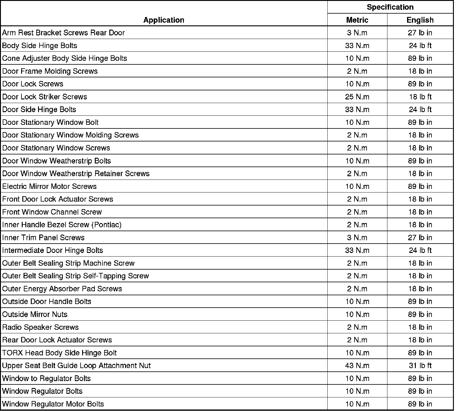 Fastener Tightening Specifications