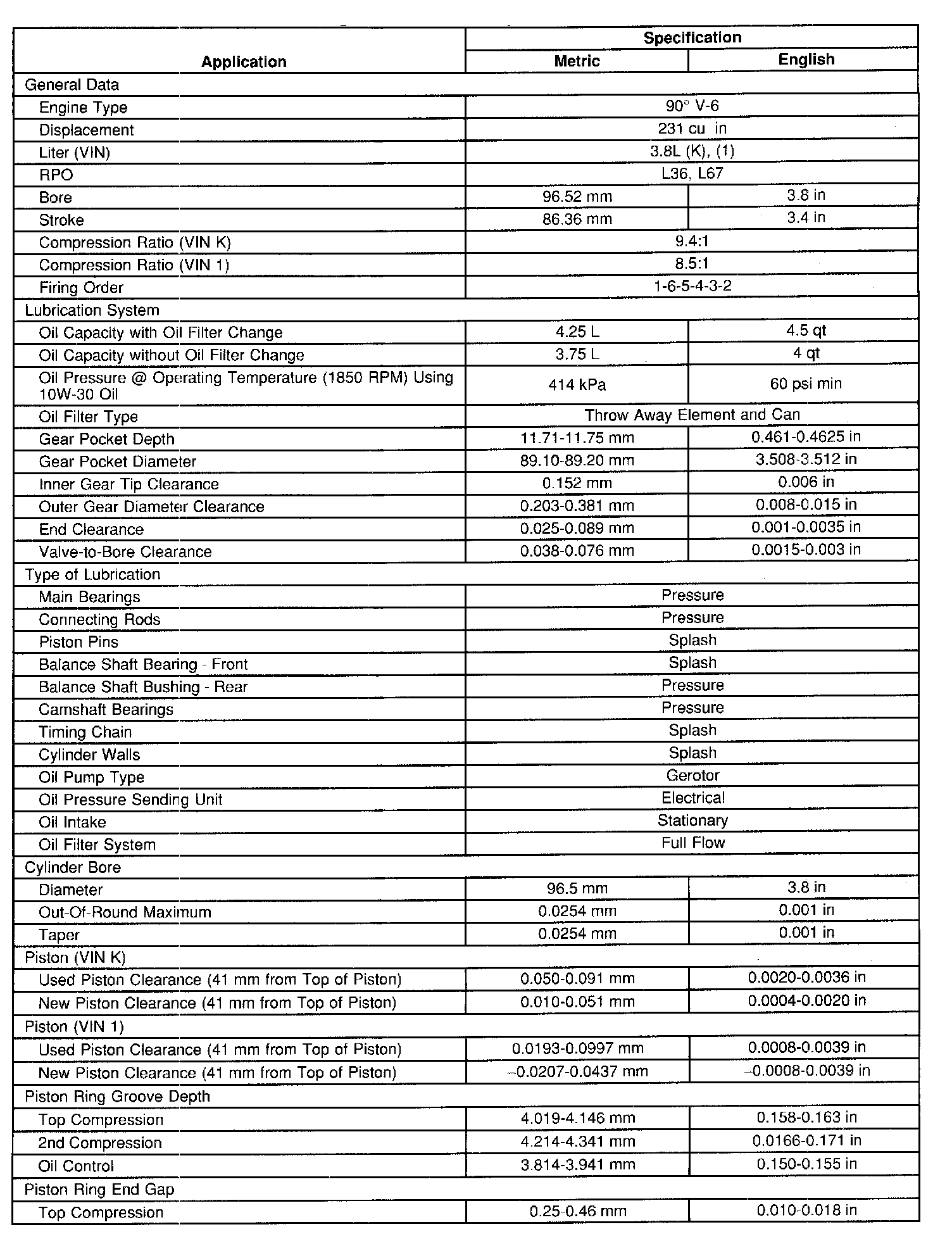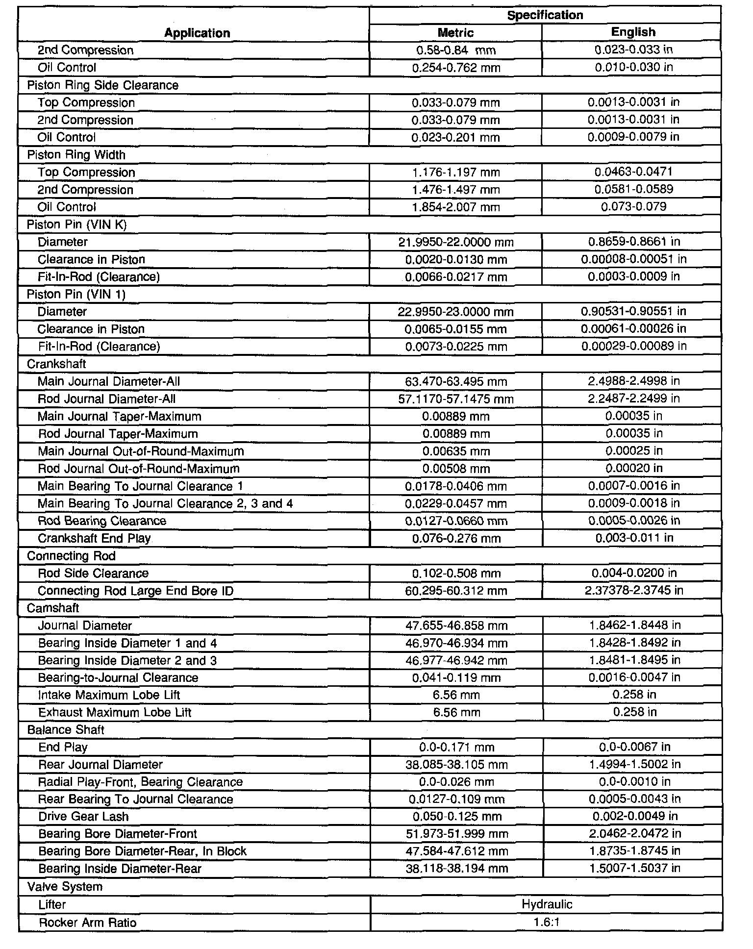 Engine Mechanical Specifications