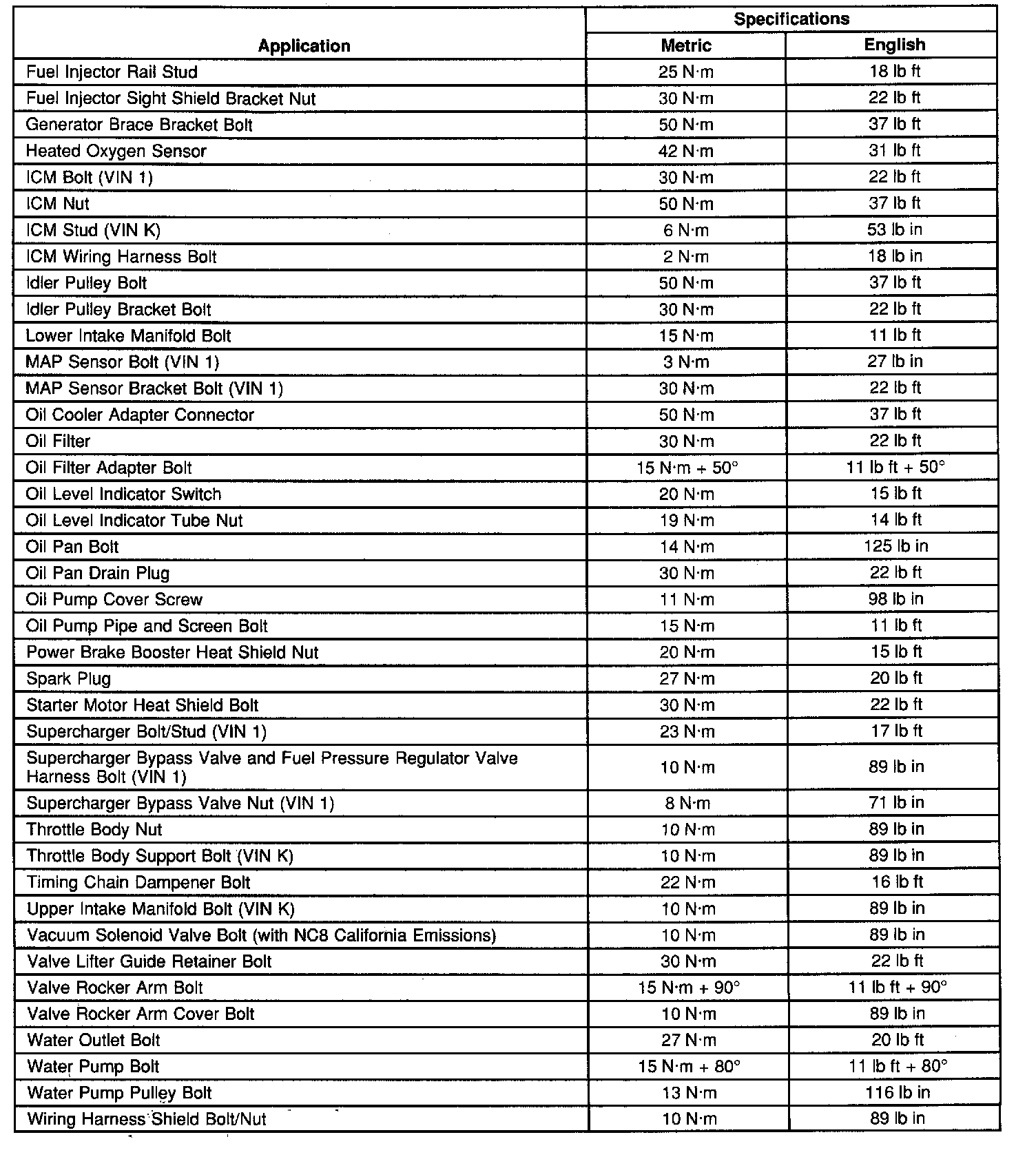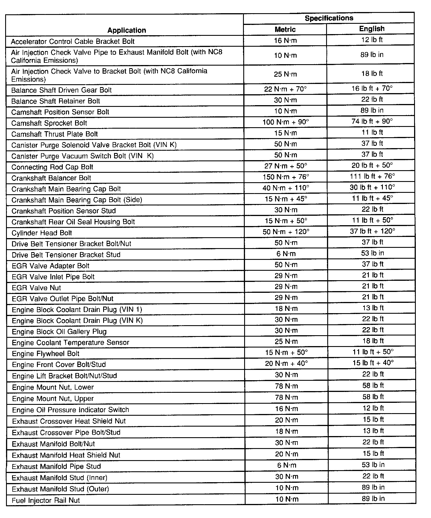 Fastener Tightening Specifications