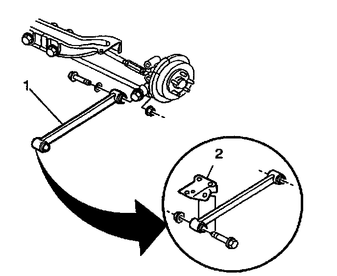 1. Connect the trailing arm (1) to the trailing arm bracket (2).