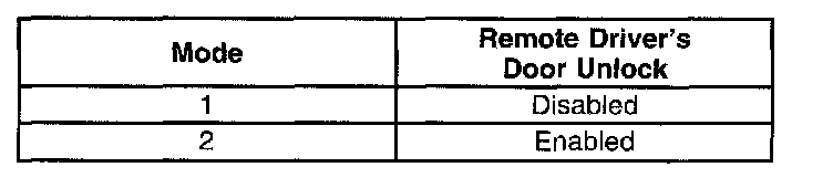 IMPORTANT: If the ignition switch is in the OFF position during this procedure, the remote unlock control customization will be terminated. The system will remain in the most recent mode.