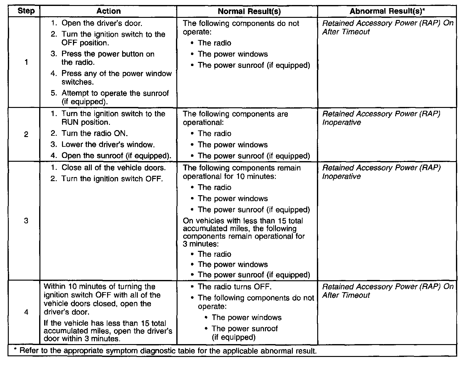 Retained Accessory Power (RAP) System Check: