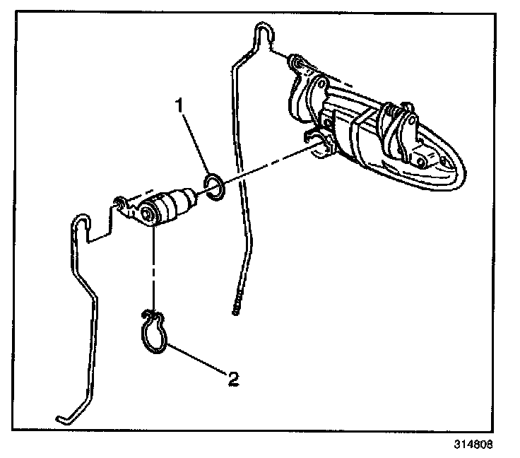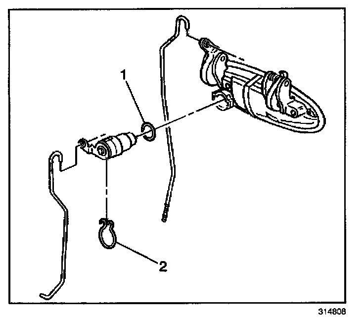 2. Remove the lock cylinder retainer clip (2).