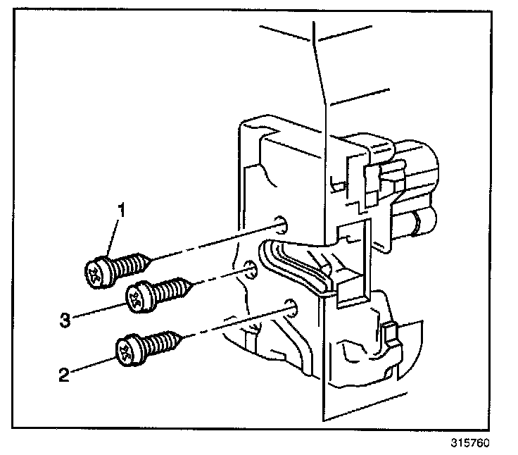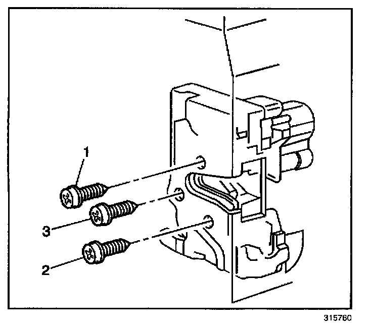4. Install the door lock screws in the proper fastener tightening sequence. First the top screw (1), then the bottom (2) and lastly the middle screw (3).