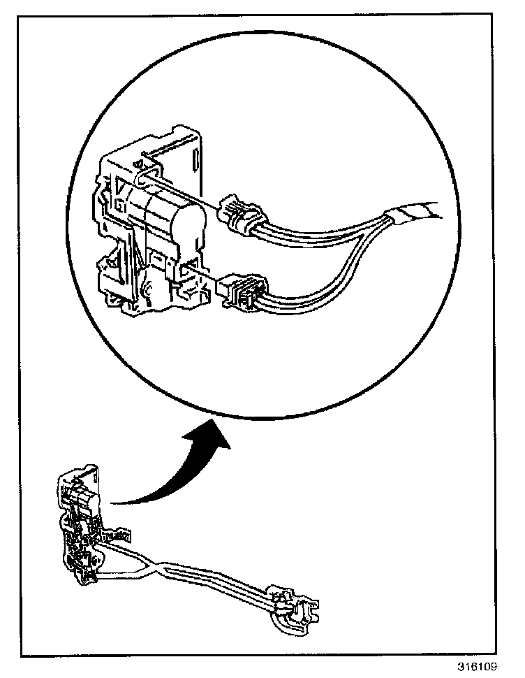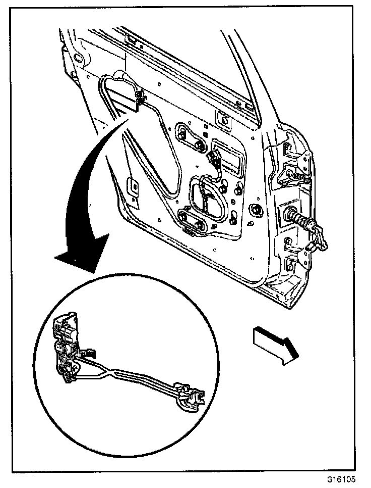 6. Position the outside door handle rod in the clip in order to eliminate any tree play in the outside door handle.