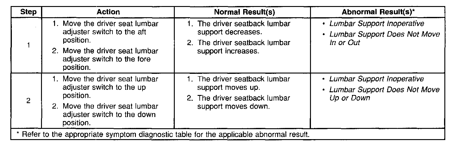 System Check - Lumbar Support