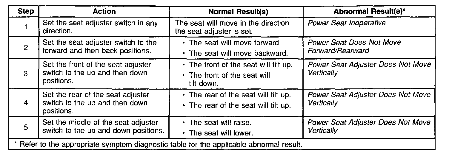 Power Seats System Check: