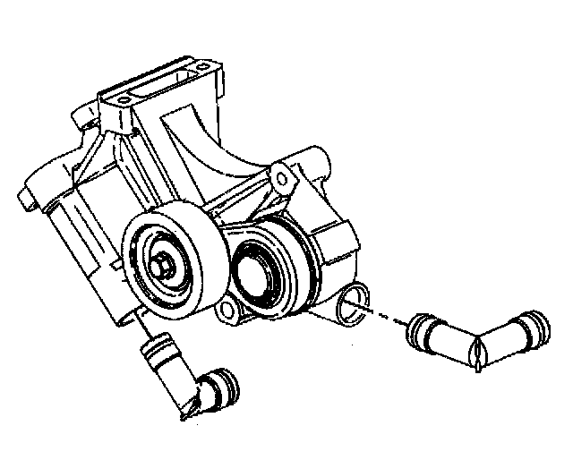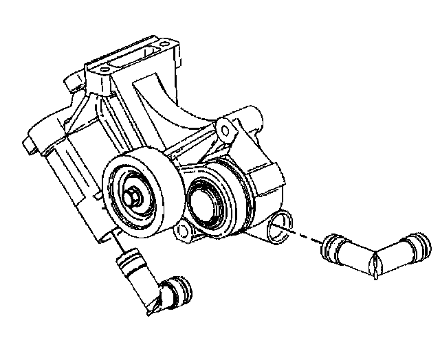 13. Install the drive belt tensioner mounting bracket and the water heater bypass inlet pipe to the drive belt tensioner mounting bracket. Refer to Drive Belt Tensioner Replacement.