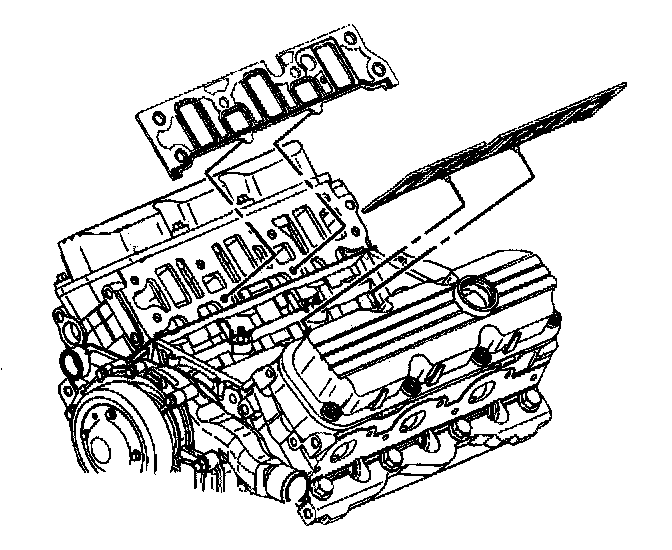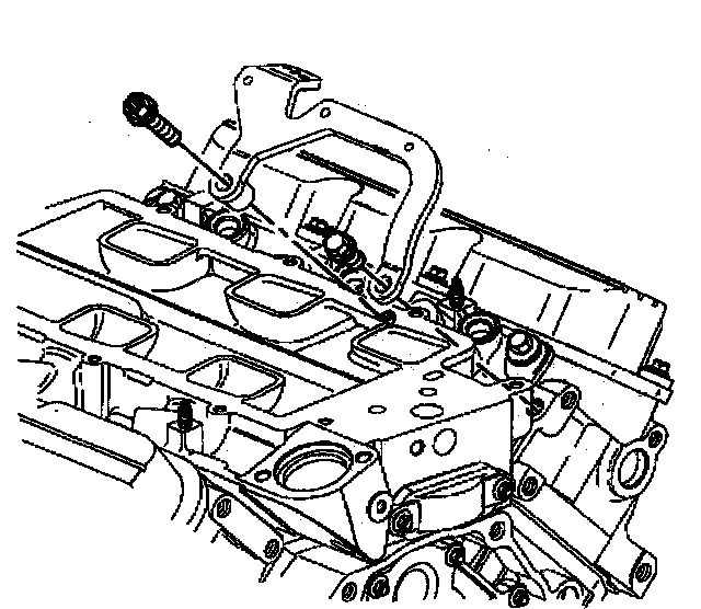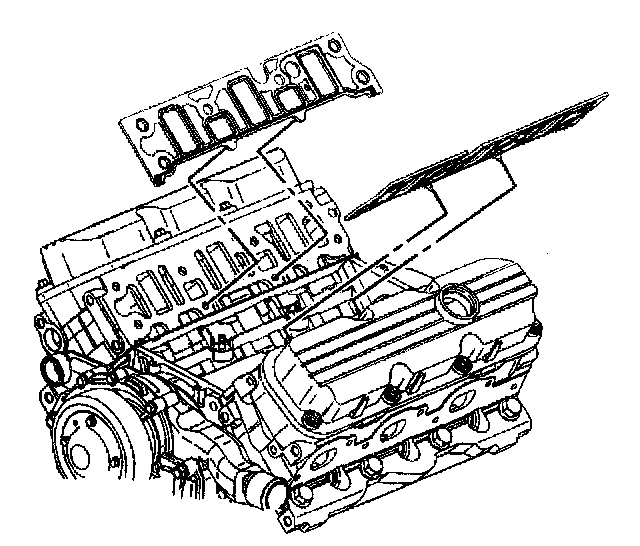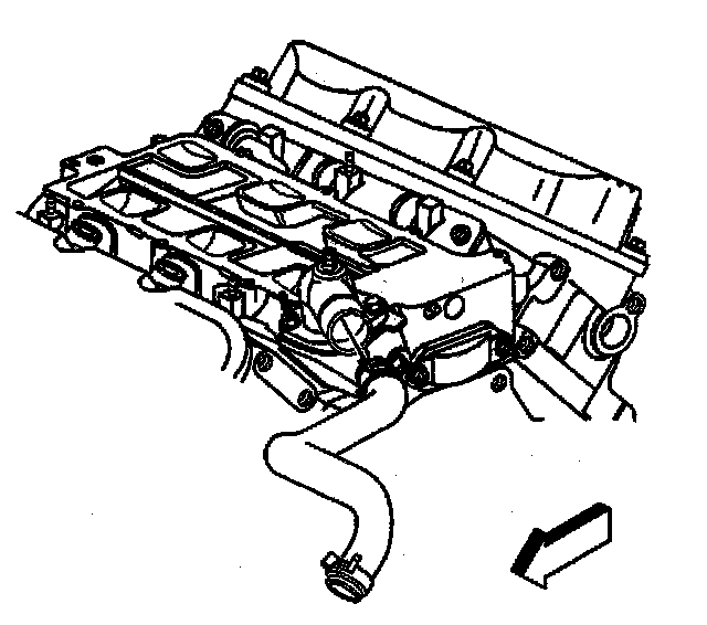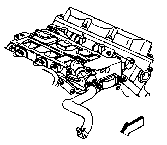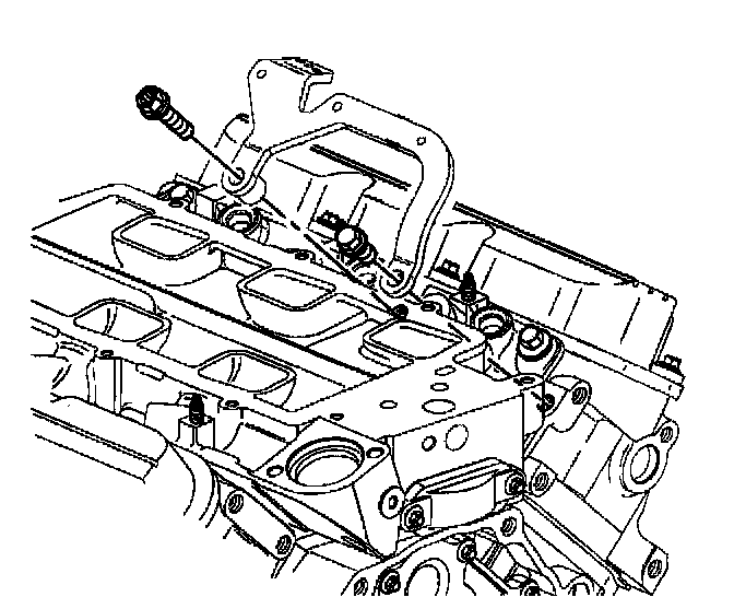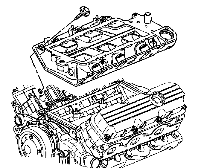 Removal ProcedureNotice: The two bolts which fasten the lower intake manifold to the cylinder head are accessible only after the upper intake is removed. The bolts are located in the right front and left rear corners of the lower intake manifold. Remove the upper intake manifold to service the lower intake.