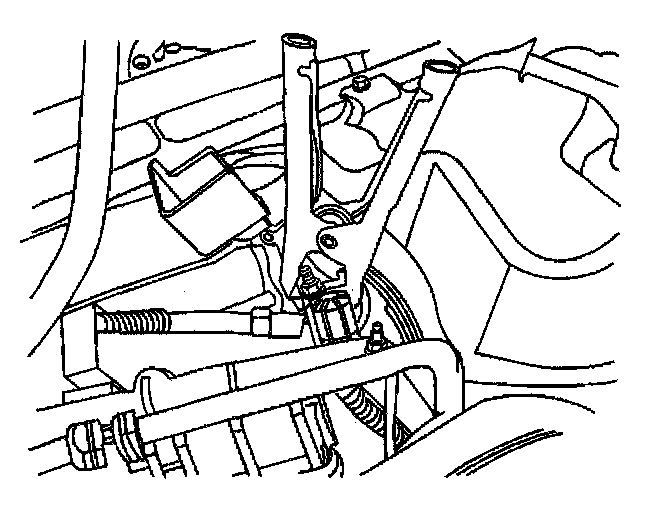 8. The final connection is made to the negative (-) tab near the power steering pump. (or, a heavy, unpainted metal engine part) of the vehicle with the discharged battery.