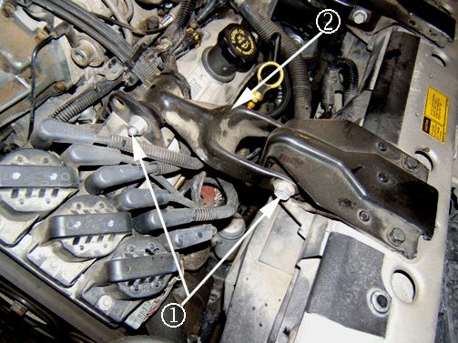 2. Remove the left engine mount strut (2).