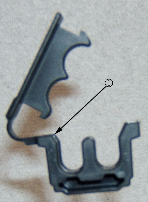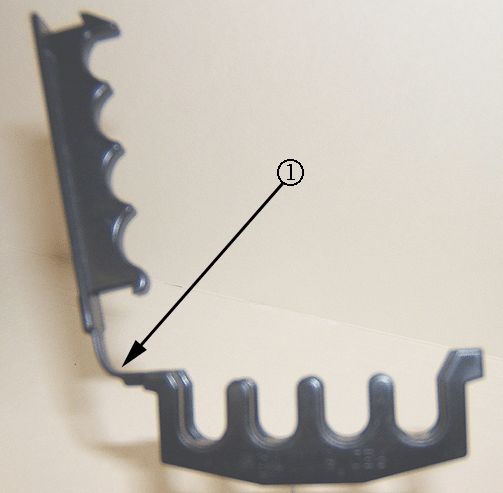 3. Remove the 1-3-5 spark plug plastic retaining channel (cover) clip/bracket from the engine and discard (1).