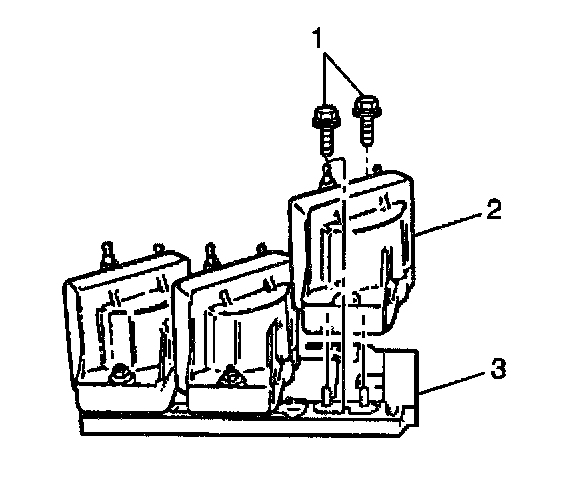 5. Remove the coils (2) from the ignition control module (3).