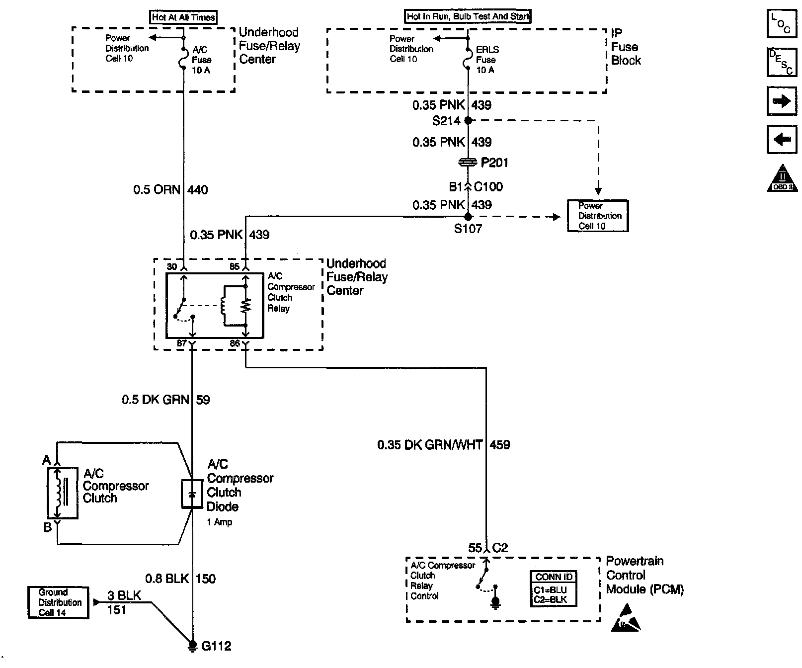 Engine Control Schematics: Power, Ground And A/C Compressor Clutch: