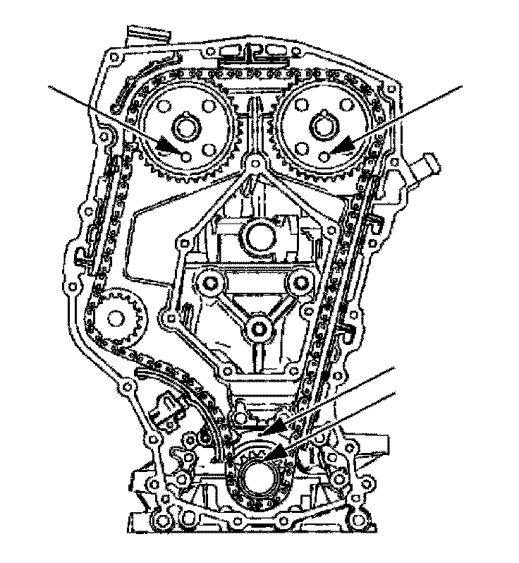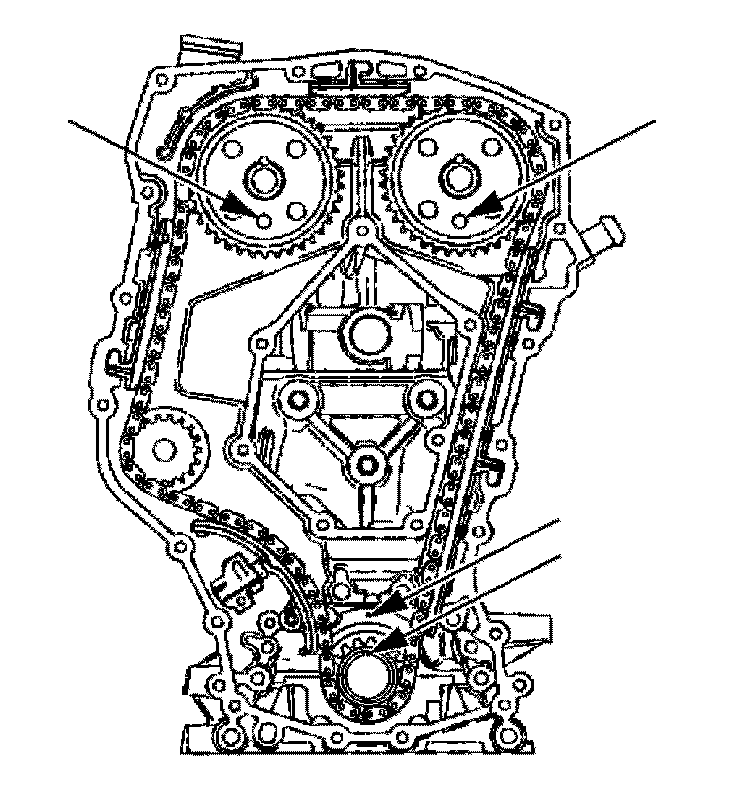 5.3 Release the J 39579 . The length of the chain between the 2 camshaft sprockets will tighten.