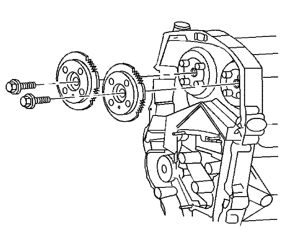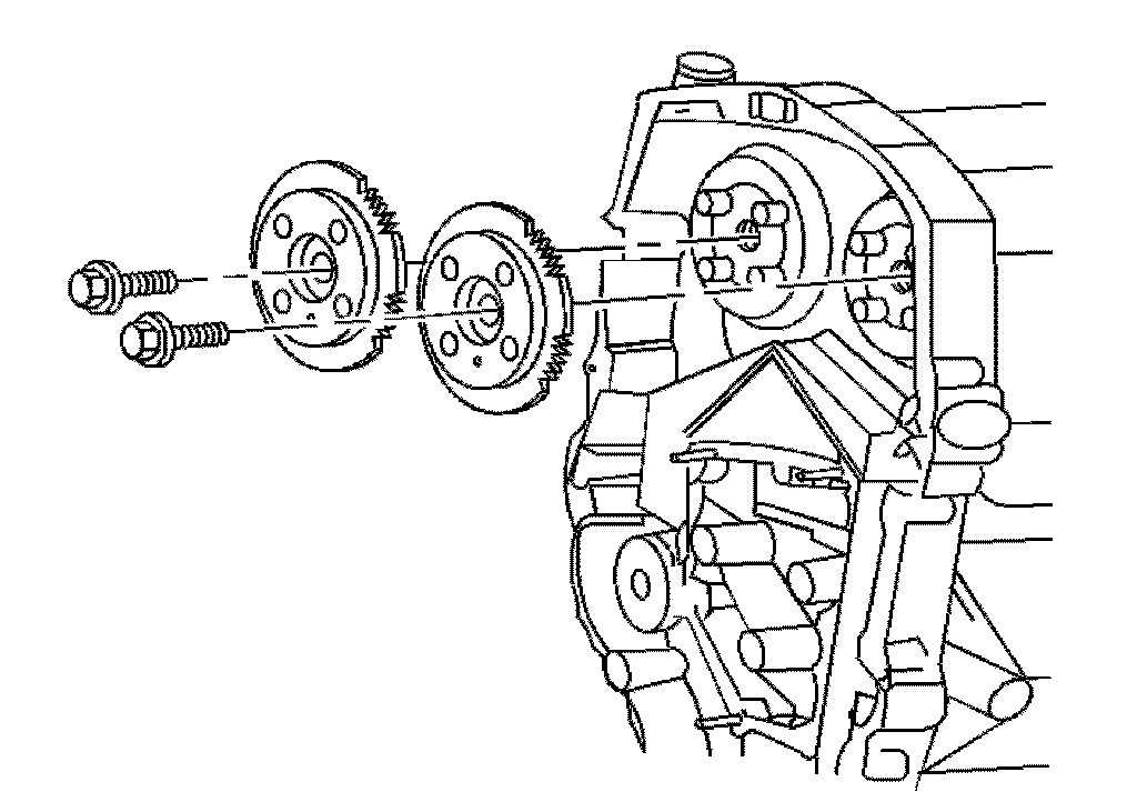 2. Install the retaining bolts and washers to the intake and exhaust camshaft sprockets.