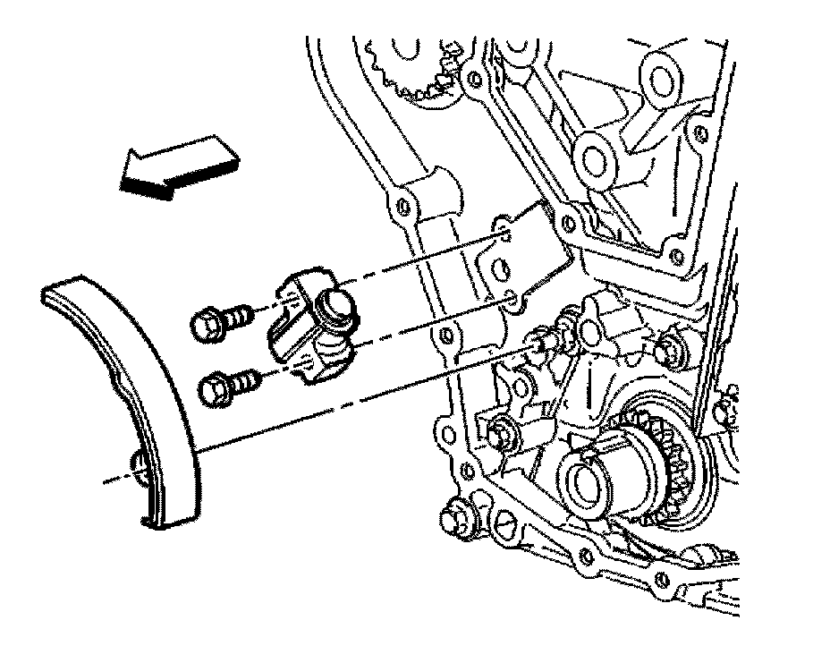 11. Loosely install the tensioner assembly and bolts to the timing chain housing.