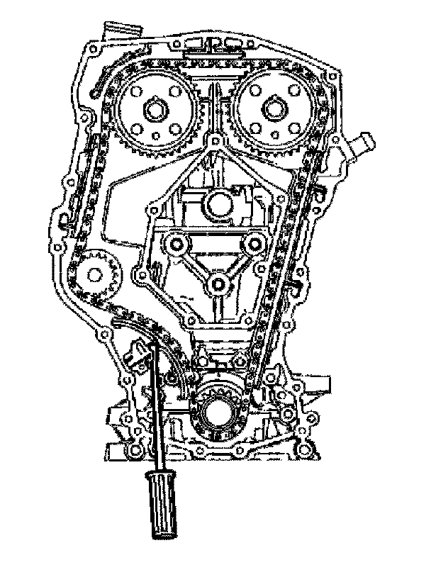 7. Ensure that all of the slack in the timing chain is above the tensioner assembly.