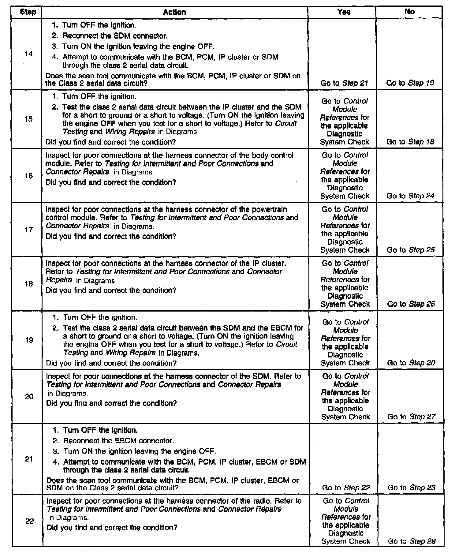 2. A partial malfunction in the class 2 serial data circuit uses a different procedure from a total malfunction of the class 2 serial data circuit.
