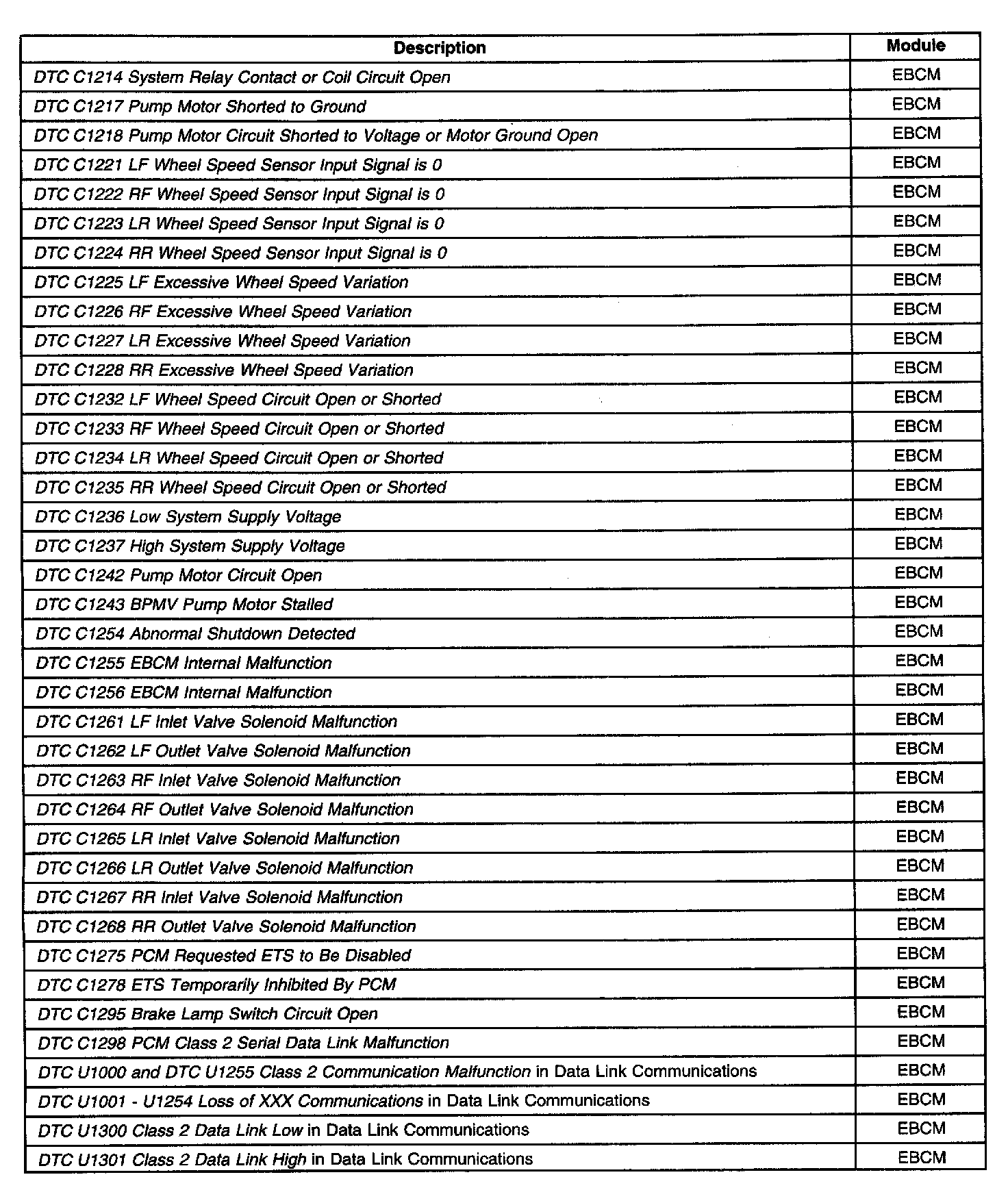 Diagnostic Trouble Code Descriptions