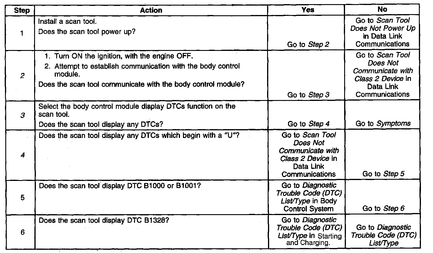 2. Lack of communication may be due to a partial malfunction of the class 2 serial data circuit or due to a total malfunction of the class 2 serial data circuit The specified procedure will determine the particular condition