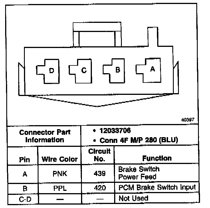 Four Way Brake Switch Connector, Wiring Harness Side