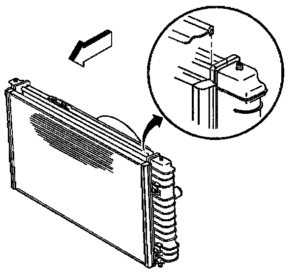 7. Lift the condenser tabs from the clips on the radiator.
