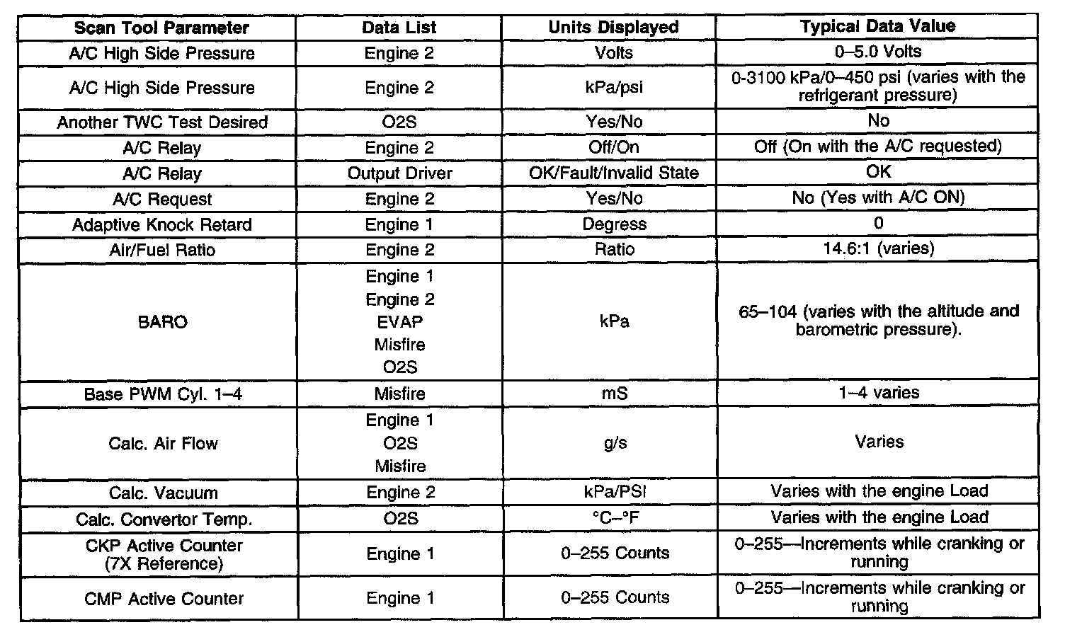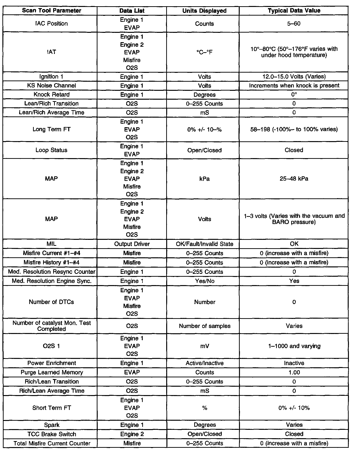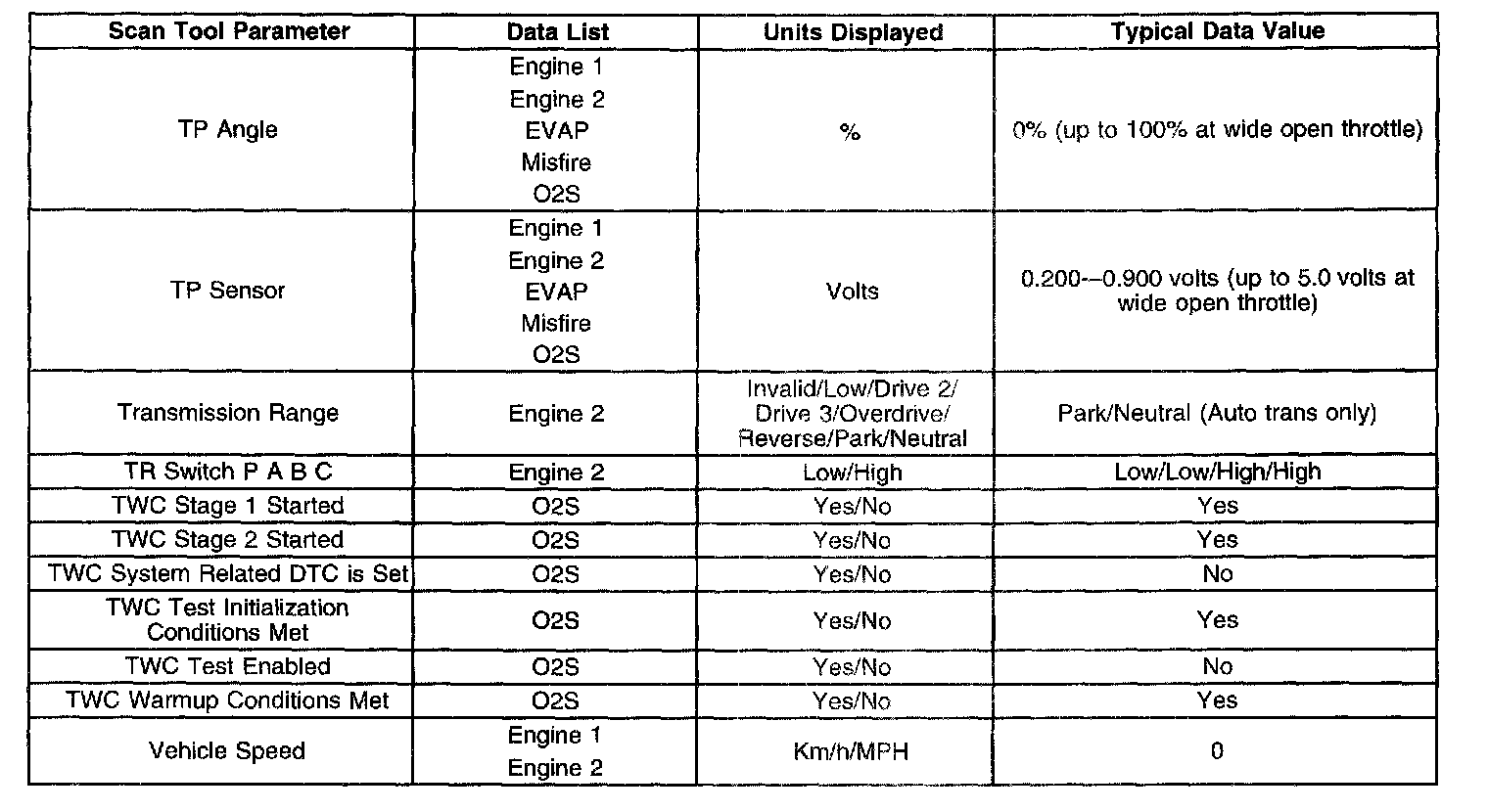 For scan tool parameter definitions, refer to Scan Tool Data Definitions. Scan Tool Data, Normal Values and Definitions