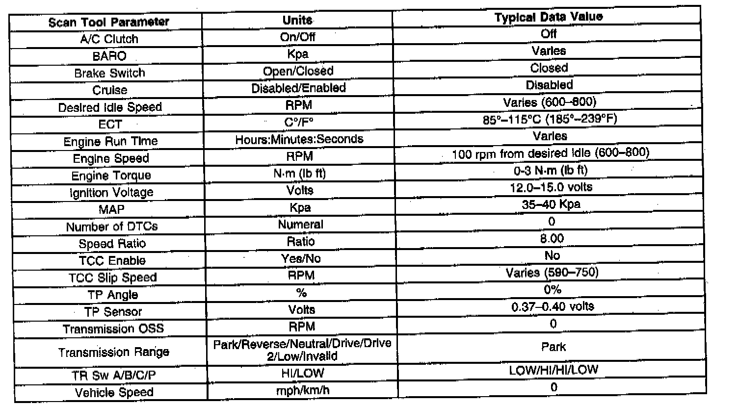 Only the parameters listed are used for diagnosing. If a scan tool displays other, parameters, the values are not recommended by General Motors for use in diagnosis.