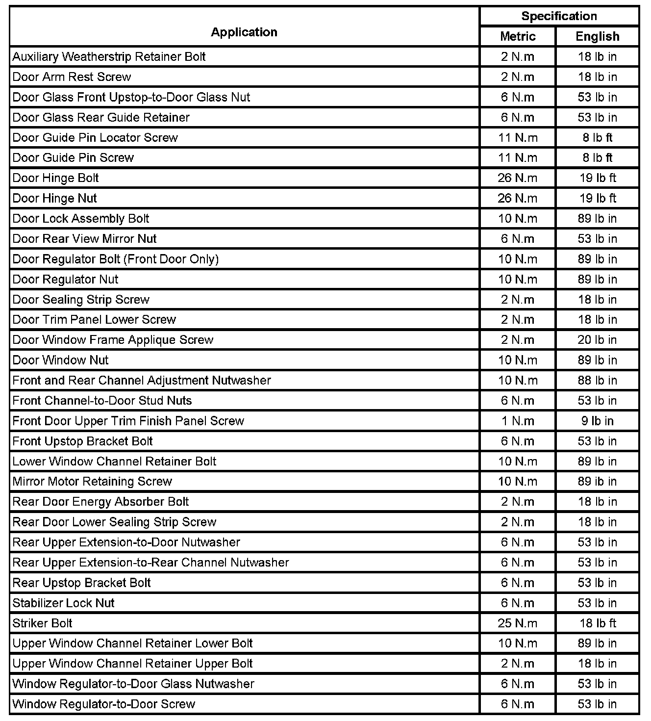 Fastener Tightening Specifications