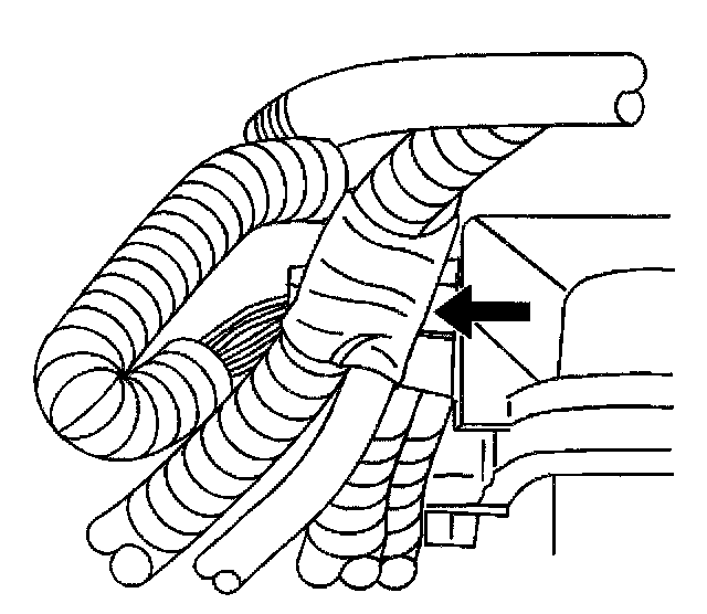 3. Cut the tape holding the two cables together at the retainer on the battery tray.