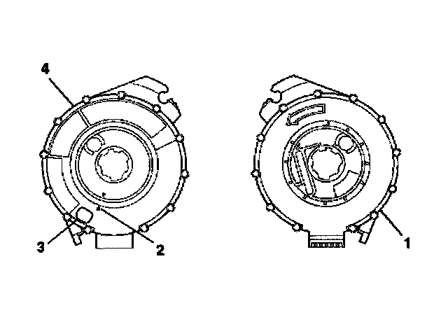3. If the front (4) of the SIR coil has a centering window (3) and no spring service lock on the back side (1), perform the following steps: