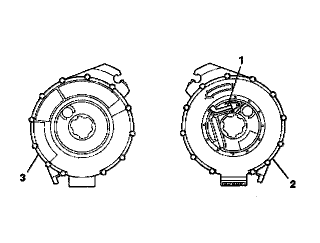 4. If no centering window is present on the front side (3) of the SIR coil assembly, but a spring service lock (1) is on the back side (2), perform the following steps: