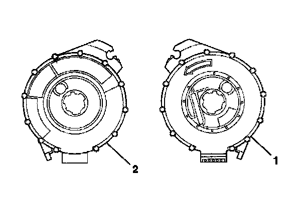 5. For no centering window on the front side (2) of the SIR coil assembly and no spring service lock on the back side (1), perform the following steps: