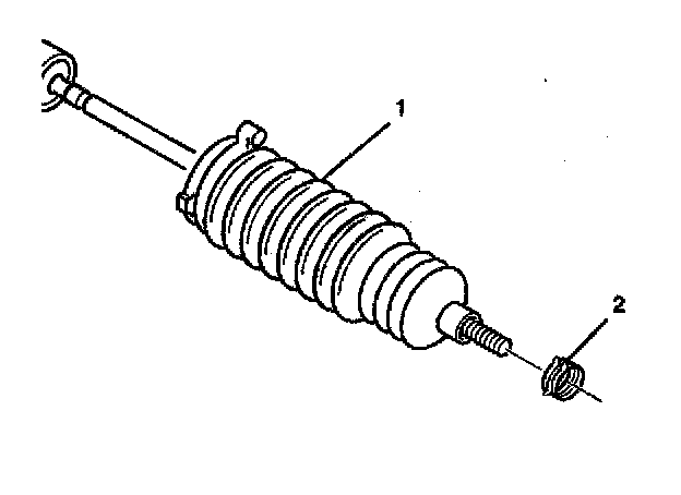 2. Prior to rack and pinion boot installation, apply grease to the inner tie rod assembly (2) and the rack and pinion gear assembly (1).