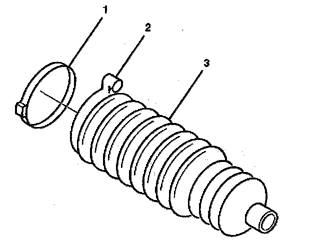 6. Install the rack and pinion boot (3) onto the inner tie rod assembly (2).