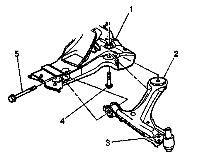 4. Install the lower control arm front (5) and rear (4) mounting bolts.
