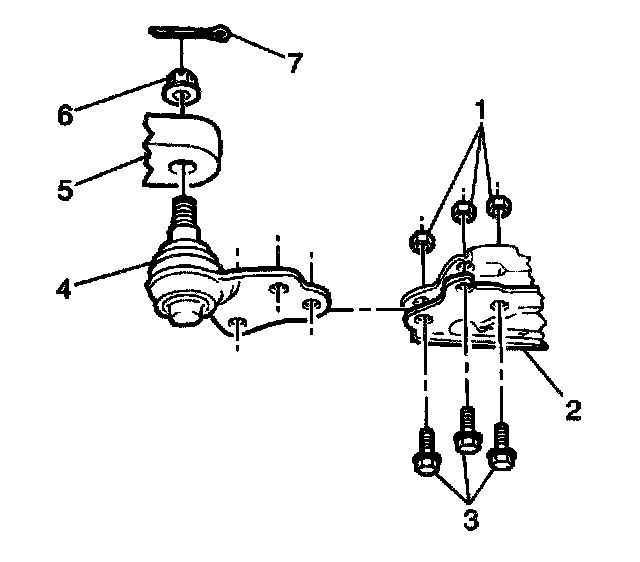 2. Install the 3 ball joint bolts (3) and the nuts (1). Follow the instructions in the ball joint kit. Tighten the ball joint bolts (3) according to the specifications in the instructions.