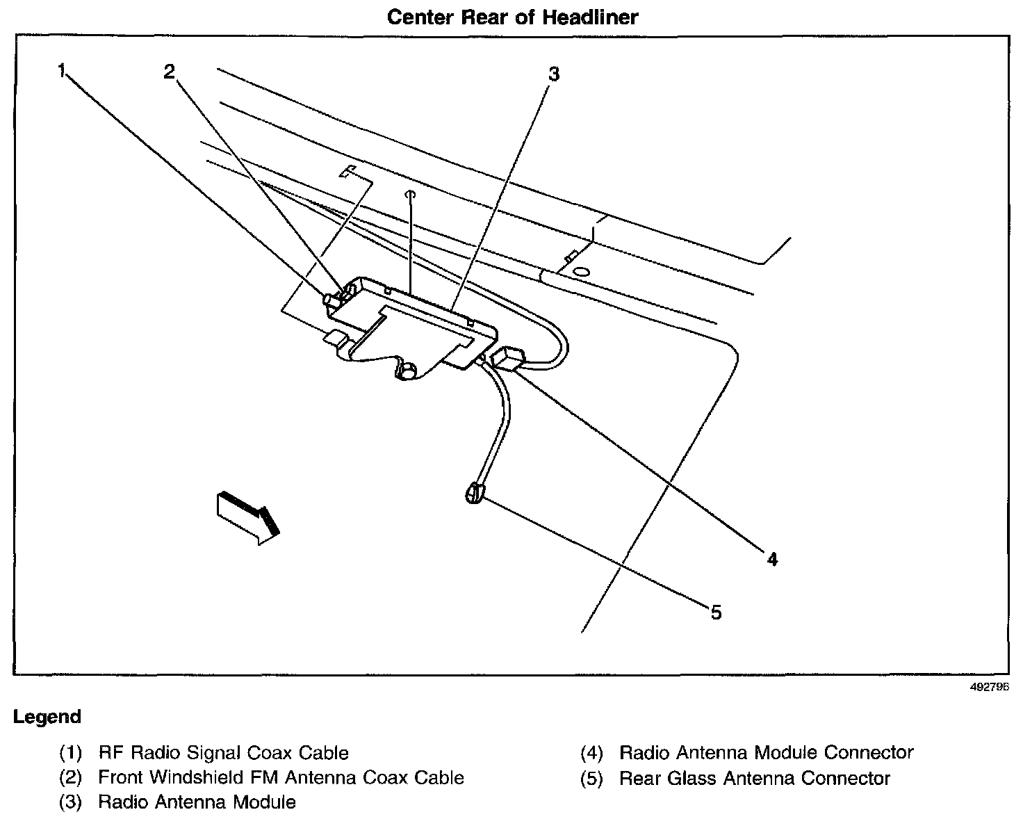 In the headliner, at the center rear
