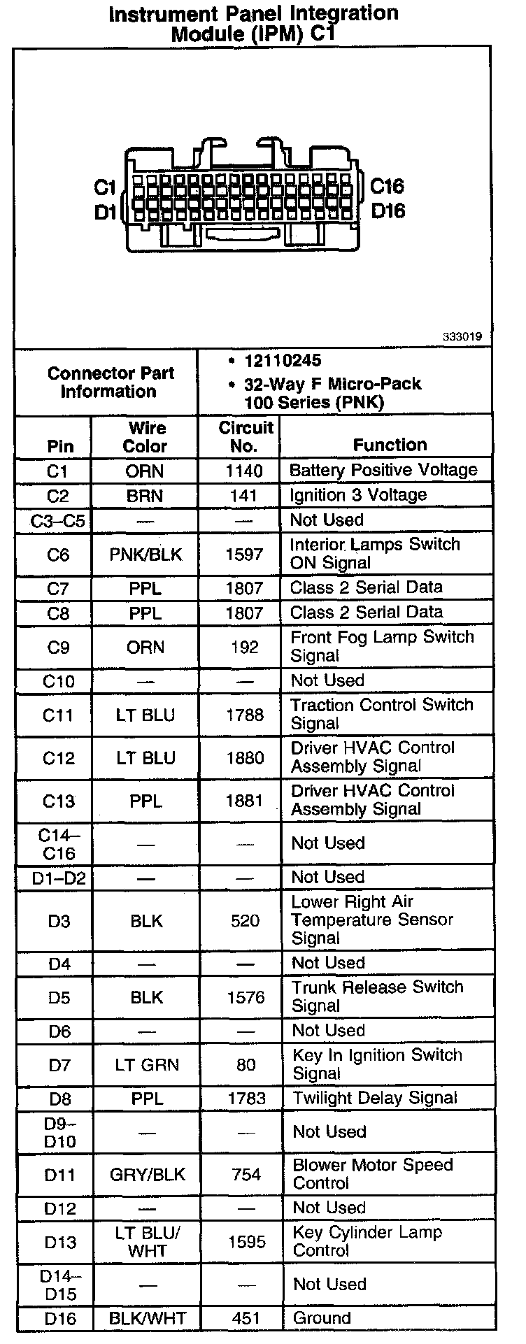 Instrument Panel Integration Module (IPM) C1: