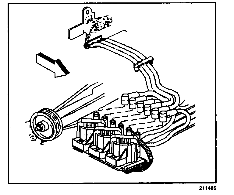 3. Disconnect the spark plug wires from the coil assemblies. Before removing the wires, note the position of the wires.