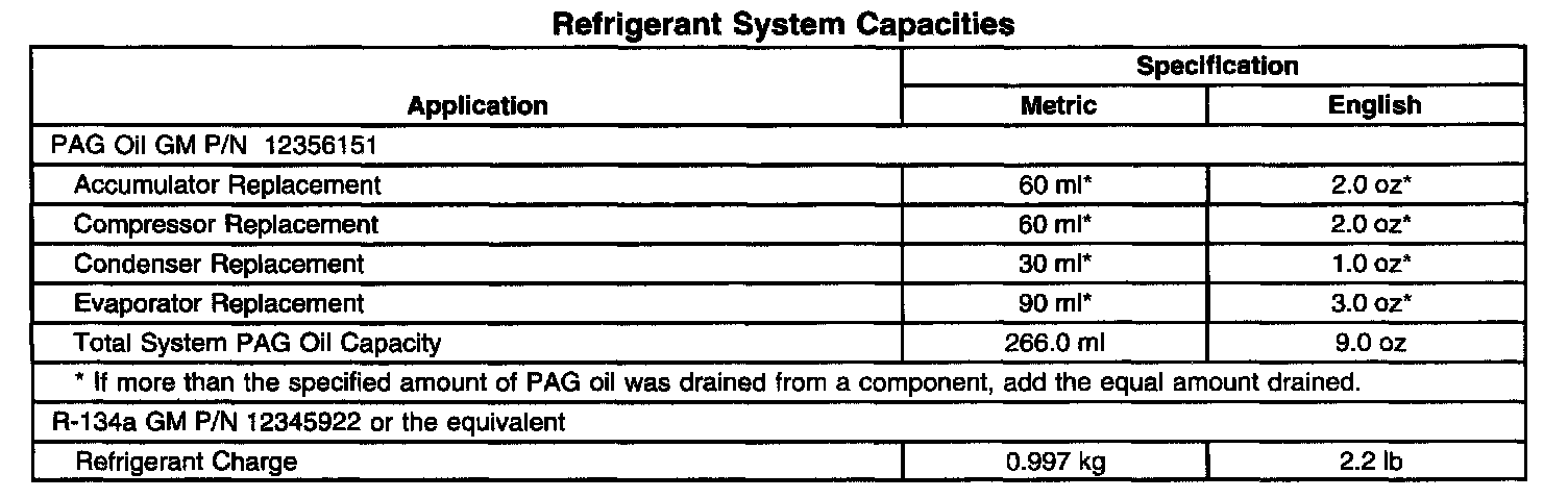 Refrigerant System Capacities: