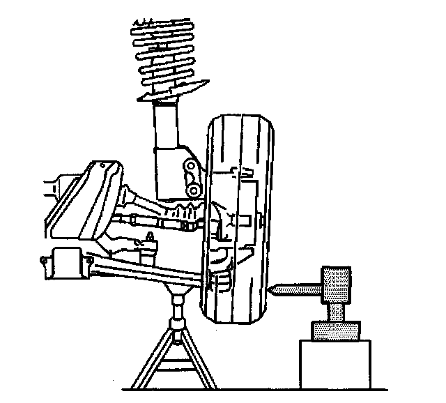 5.1. Position the J 8001 dial indicator against the lowest outboard point on the wheel rim.
