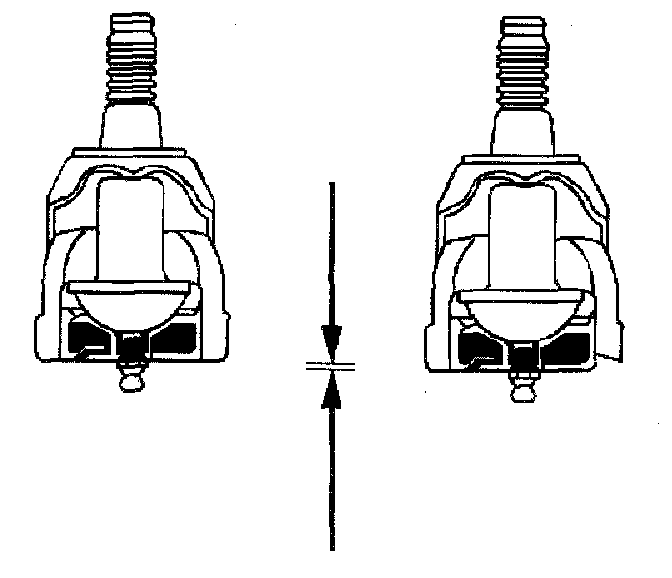 6.1. Inspect by sight the lower ball joint for wear. The position of the housing into which the grease fitting is threaded indicates wear. This round housing projects 1.27 mm (0.050 inch) beyond the surface of the lower ball joint cover on a new ball joint. Under normal wear, the surface of the lower ball joint housing retreats inward very slowly.