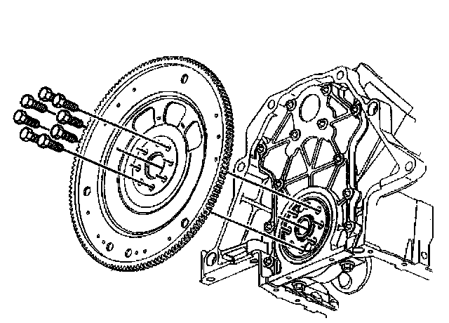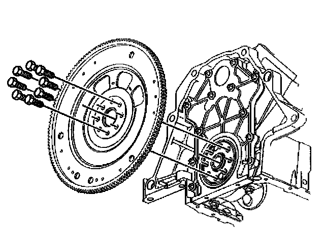 2. Remove the eight bolts attaching the flywheel to the crankshaft flange. Discard the bolts.