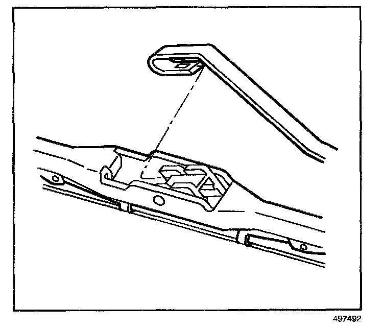 1. Install the wiper blade onto the arm by placing the arm hook through the opening in the wiper blade.